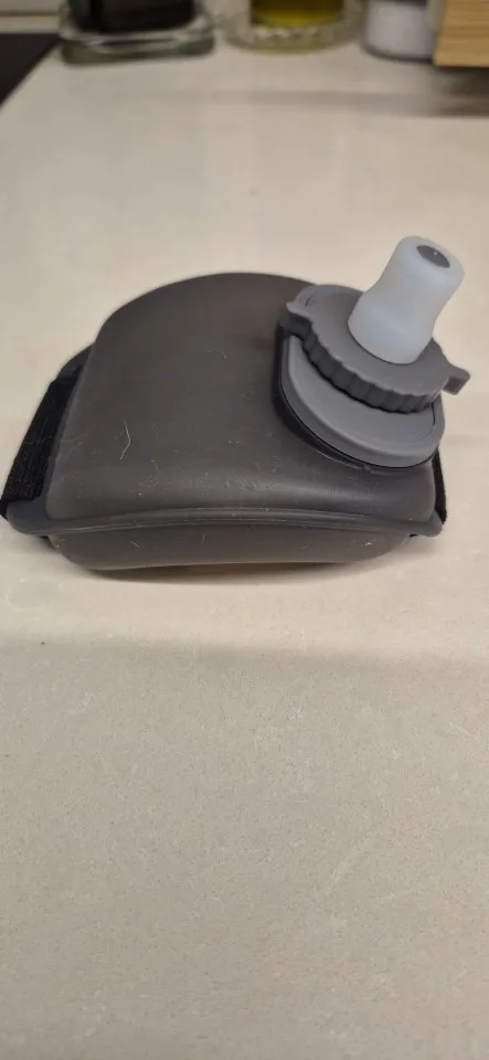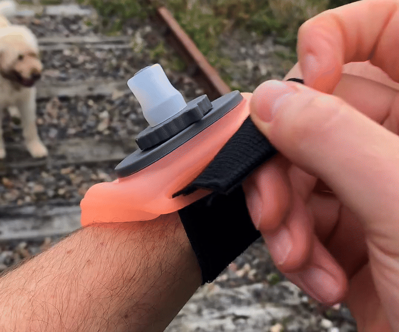 The wrist water bottle holds around 200ml (7oz) — just enough for quick sips during runs, workouts, or hikes without adding bulk or weight